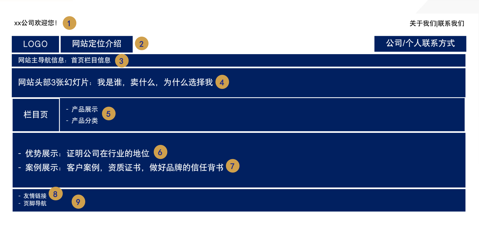 主要的载体就是企业官网,以下图片是我梳理的网站策划的框架结构简易版。